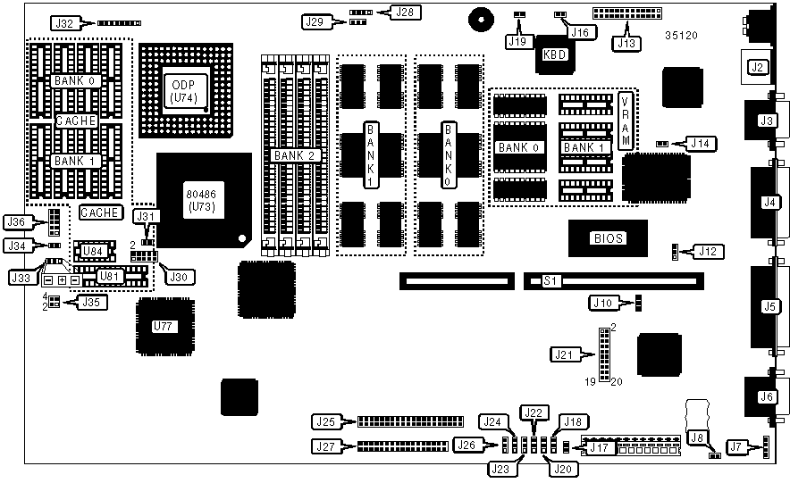 Note:If Bank 1 sockets are omitted from board, board was factory installed with 1MB of VRAM. Bank 0 is soldered to the board.