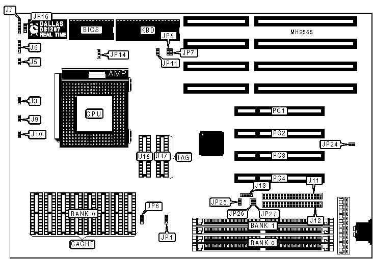 32-bit PCI slots (4), green PC connector, IDE interfaces (2) |