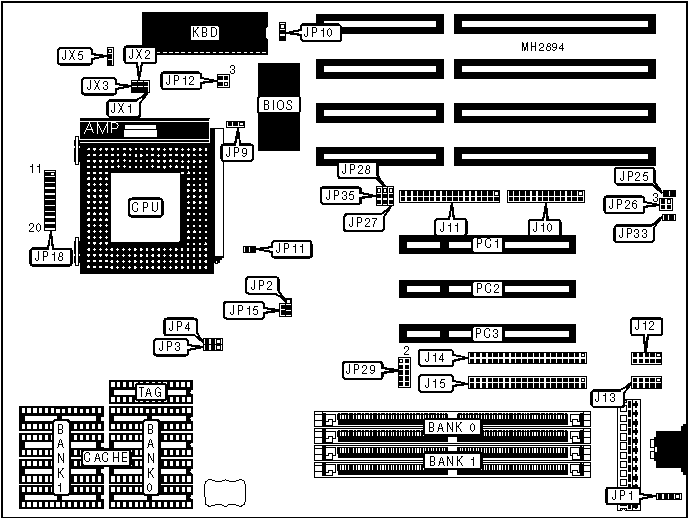 Parallel port, serial ports (2), 32-bit PCI slots (3), green PC connector, floppy drive interface, IDE interfaces (2) |