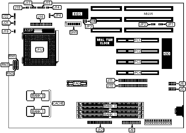 32-bit PCI slots (4), floppy drive interface, green PC connector, IDE interfaces (2), parallel port, serial ports (2), VRM connector