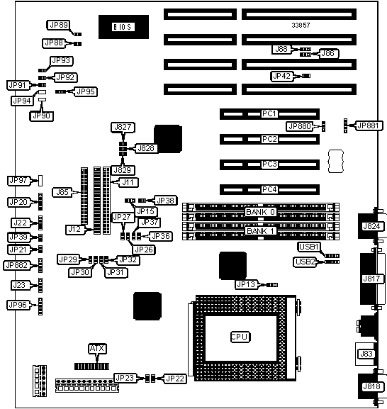Note: Board accepts EDO memory. Board also accepts x 32 SIMMs. Banks are interchangeable.