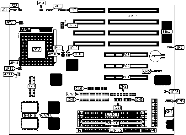 Note: Board accepts EDO memory. Banks are interchangeable. | ||