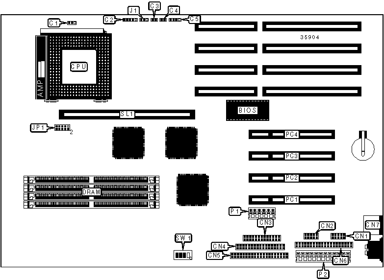 32-bit PCI slots (4), floppy drive interface, IDE interfaces (2), parallel port, PS/2 mouse port, serial ports (2), cache slot