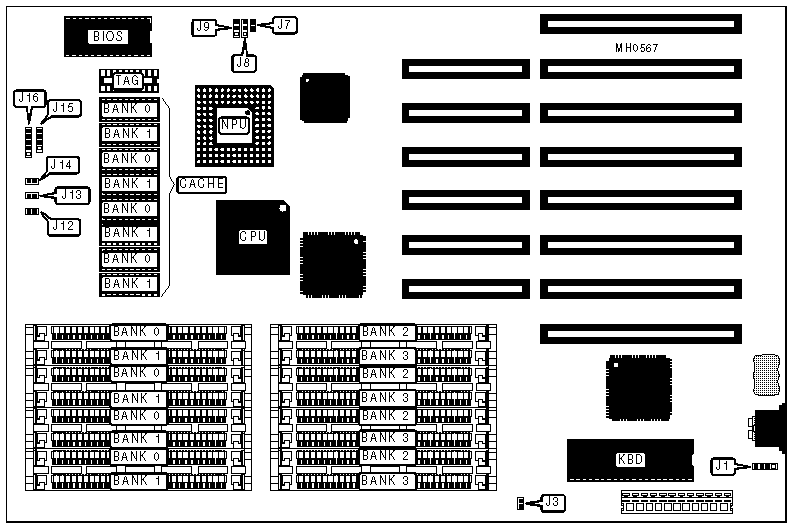 Note:The locations of jumpers J2, J4, J5, J6, J10, & J11 are unidentified.