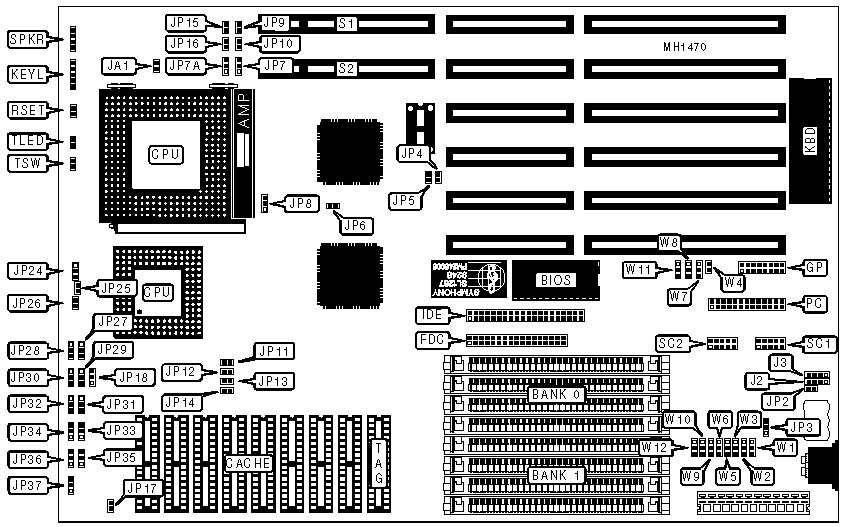 Note: J3 & JP2 will not function unless the DS1287 RTC is replaced with a DSA146818A RTC.