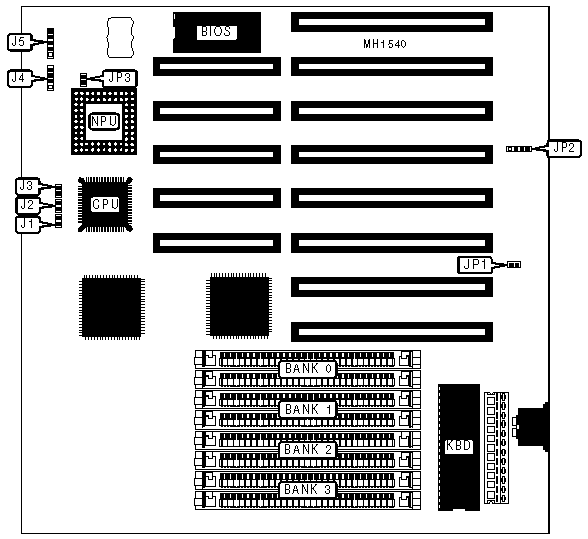 Note:When using 44256 or 4464 chips, insert the chips into the dual-size sockets. | ||||||||