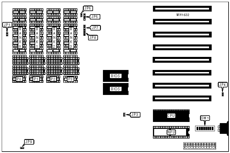 Note:When using 44256 or 4464 chips, insert the chips into the dual-size sockets. | ||||||||