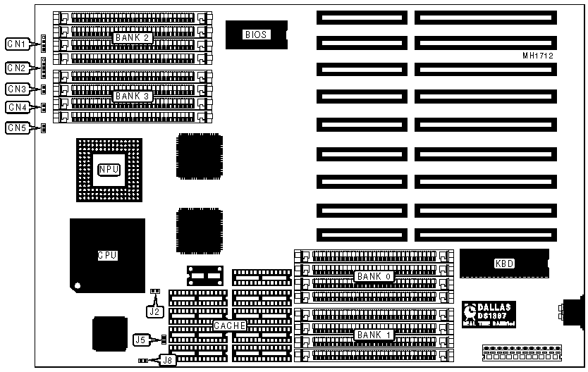 Note:This board is direct but not user upgradable and has two factory defauts to incorporate the 486DX/33MHz or 486DX/50MHz.