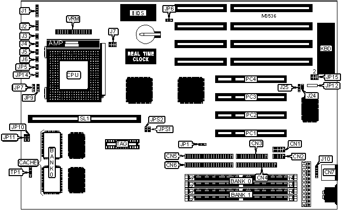 Note: If 256KB (A) configuration is used, see jumper setting for TP1 below.