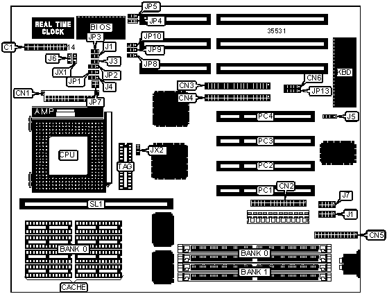 32-bit PCI slots (4), floppy drive interface, green PC connector, IDE interfaces (2), parallel port, PS/2 mouse interface, serial ports (2), cache slot, IR connector, VRM connector