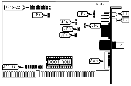 Note:If the card is on either end of a linear bus network segment, the onboard terminator may be used instead of using an external terminator |
