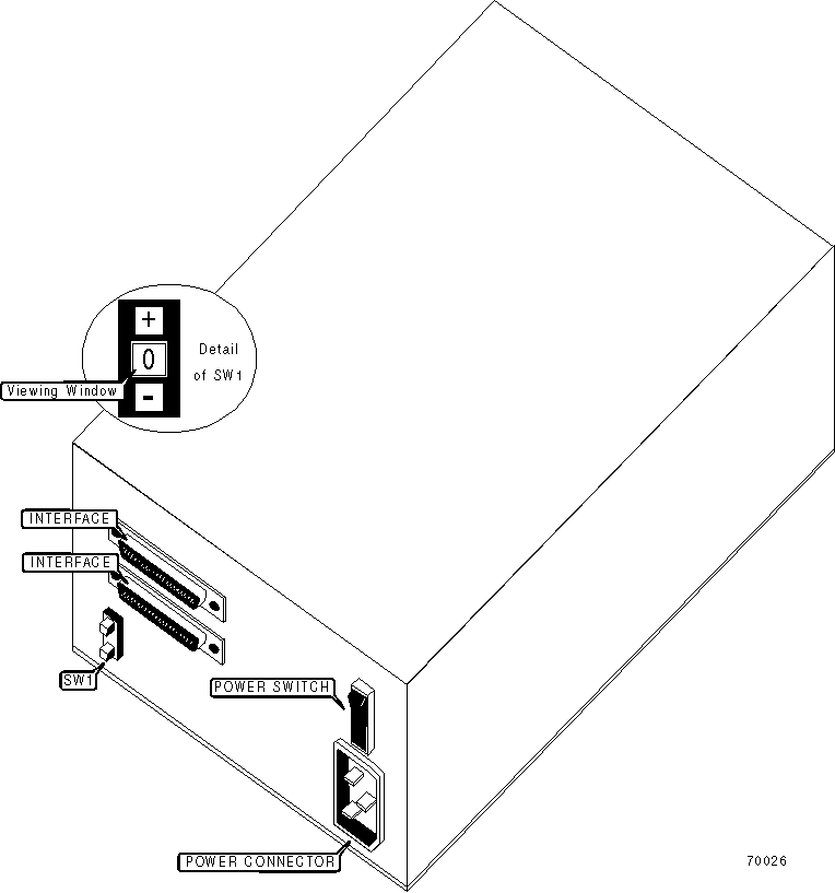 Note: SCSI ID is selected by activating SW1 until the desired number is displayed in the viewing window. Press the (+) button to select a higher ID, press the (-) button to select a lower ID.