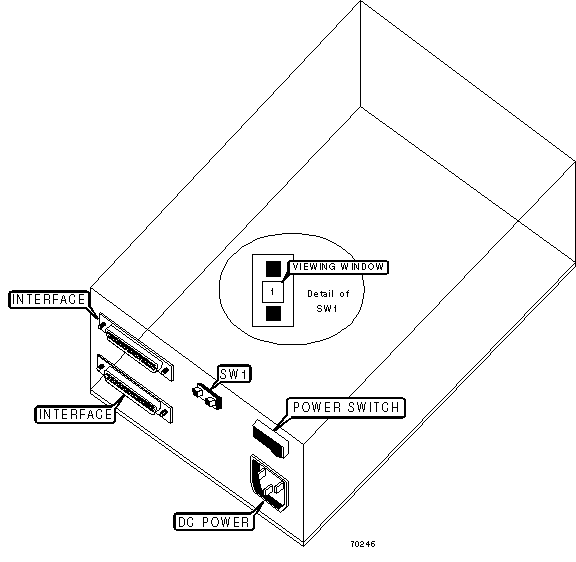 Note : SCSI ID is selected by activating SW1 until the desired number is displayed in the viewing window.
