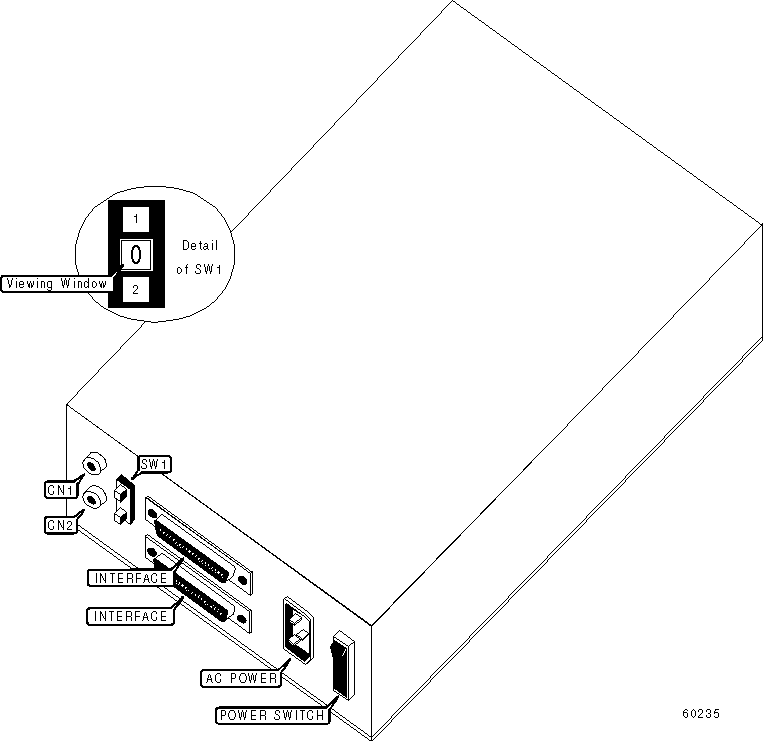 Note: Push SW1/button 1 to select a lower SCSI ID number. Push SW1/button 2 to select a higher SCSI ID number. If number shown in viewing window is ‘0’ do not push button 1. If number shown in viewing window is 7, do not push button 2.