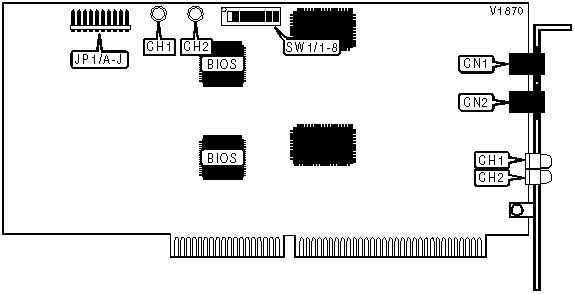Note: A total of 95 memory base address settings are available. The switches are a binary representation of the hexadecimal addresses. Switch 7 is the Least Significant Bit and switch 1 is the Most Significant Bit. The switches have the following hexadecimal values: switch 1=200h, 2=100h, 3=80h, 4=40h, 5=20h, 6=10h, 7=8h. Add the On switches to obtain the correct memory base address. (On=1, Off=0) Set Switch 8 to Off.The TruFax 200 uses four consecutive addresses. | ||||||||