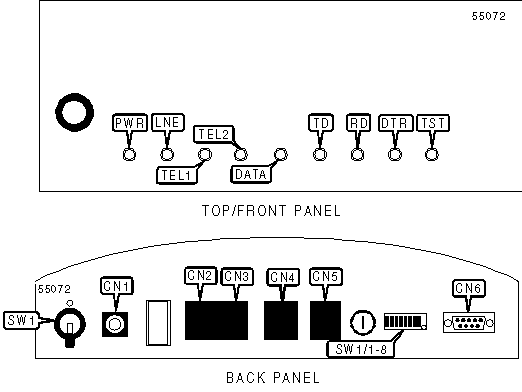 Power, ISDN BRI interface via RJ-45 connector, RJ-11 analog port (2),