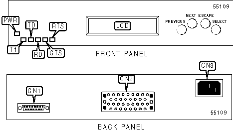 AC power, V.35 data port, T1 network interface via 15-pin connector |