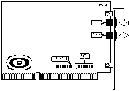 Note: A total of 127 memory base I/O address settings are available. The switches are a binary representation of the hexadecimal addresses. Switch SW1/1 is the Least Significant Bit and switch SW1/7 is the Most Significant Bit. The switches have the following decimal values: switch SW1/1=8, SW1/2=16, SW1/3=32, SW1/4=64, SW1/5=128, SW1/6=256, SW1/7=512.Turn off the switches and add the values of the off switches to obtain the correct base I/O address. (on=0, off=1)