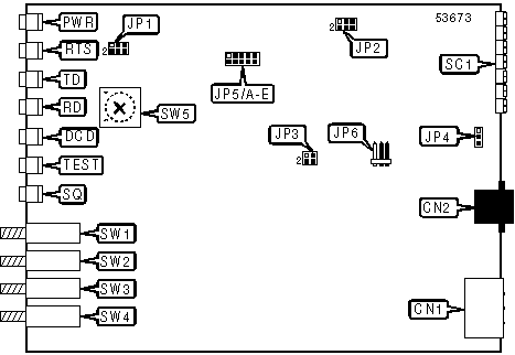 Note:Modem can be made to perform self-test by holding down SW2 and SW4. The DCD, TEST, and SQ LEDs should go on, and the RD LED should go off.