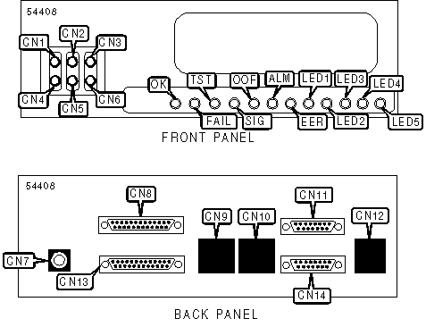 test jacks (6), power jack, auxiliary port, communications port