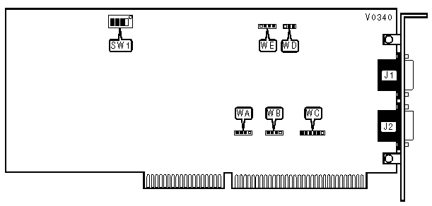 This board is made up of two cards, attached at the corners. It must be installed in two slots simultaneously. When viewed from the backplate end, the card on the right is an 8-bit ISA, and the card on the left is a 16-bit ISA.