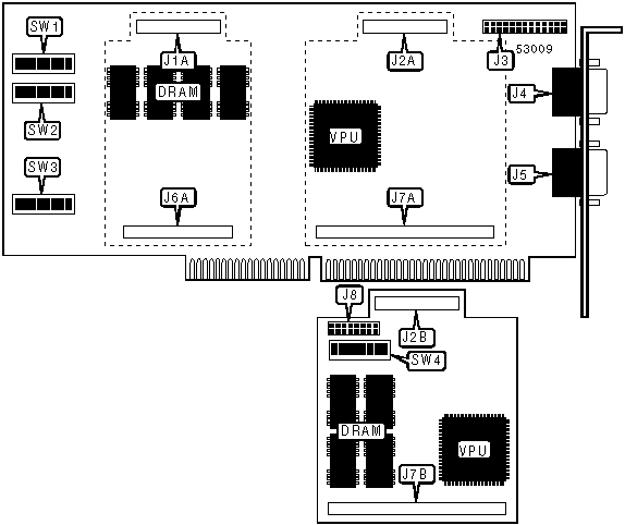 The main board and the video module may each contain 1MB or 2MB of video memory. The configuration of this memory is unidentified. |