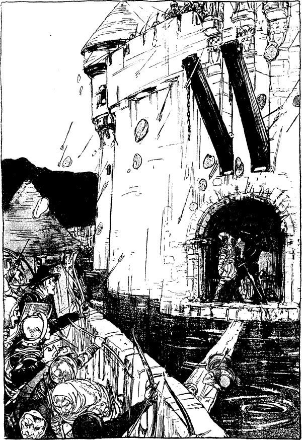 [16]On the other side he looked down into a deep mountain glen, wild and lonely, the bottom filled with fragments from the overhanging cliffs, and scarcely lighted by the reflected rays of the setting sun. For some time Rip lay musing on this scene; evening was gradually advancing; the mountains began to throw their long blue shadows over the valleys; he saw that it would be dark long before he could reach the village, and he heaved a heavy sigh when he thought of encountering the terrors of Dame Van Winkle.