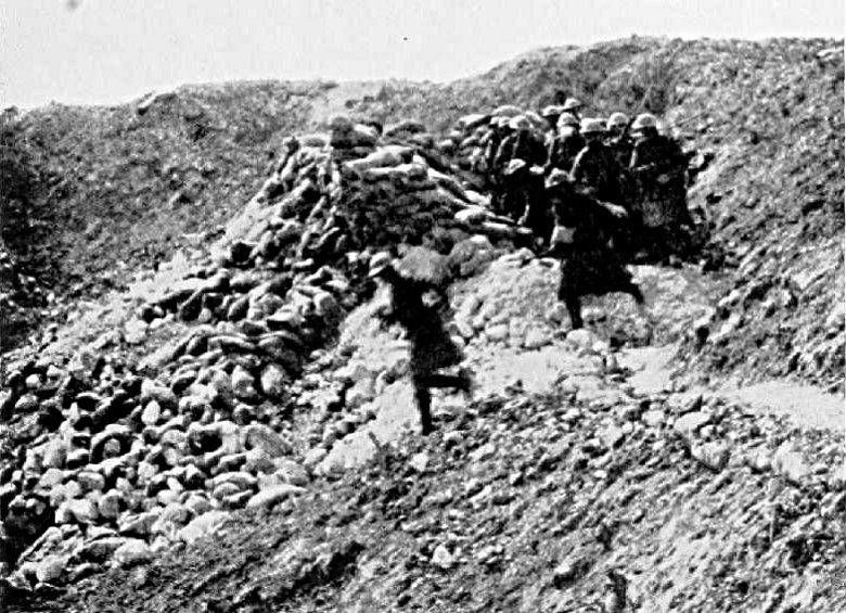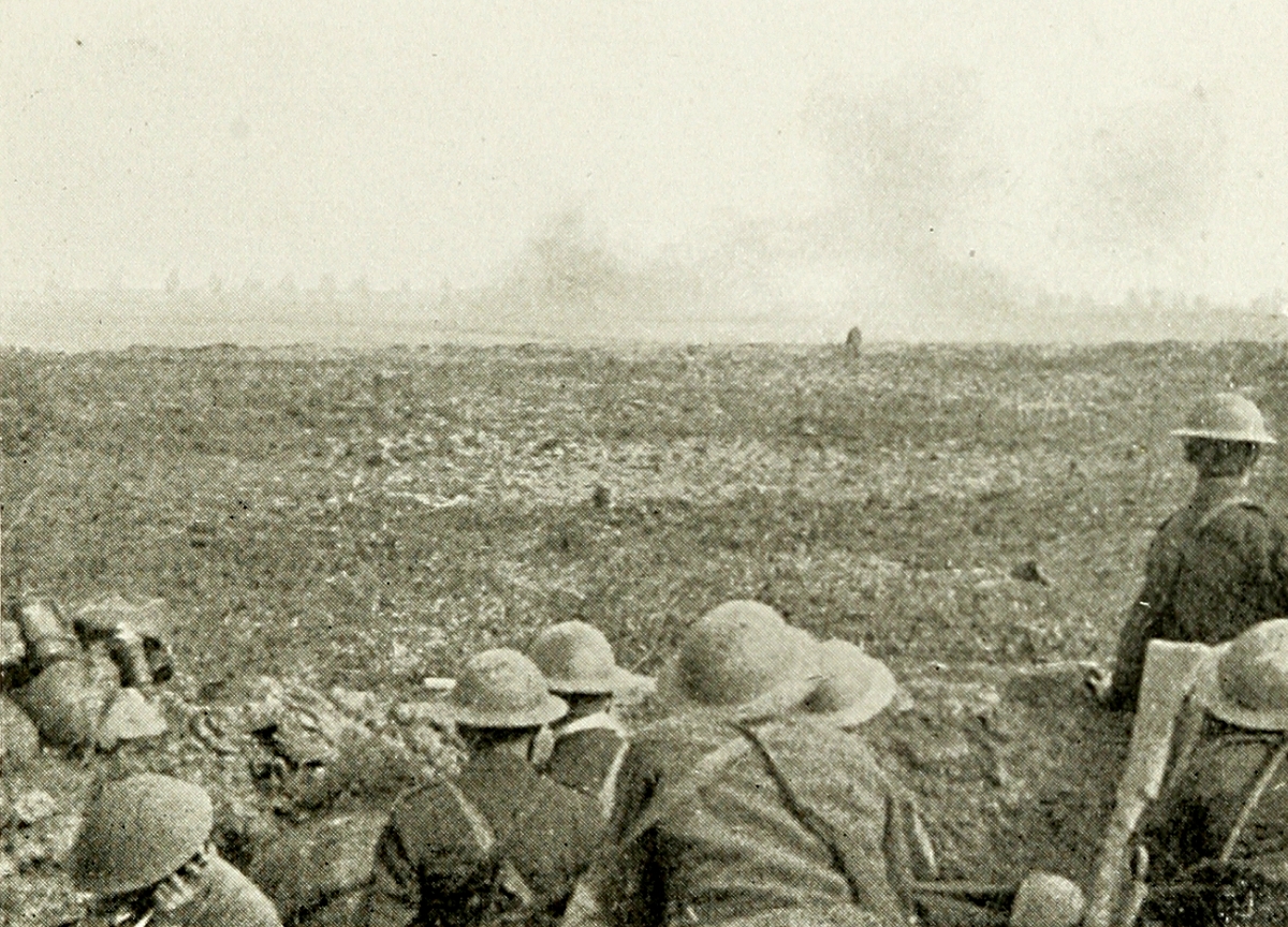 1916. A FEW MINUTES AFTER THIS PHOTOGRAPH WAS TAKEN A SHELL