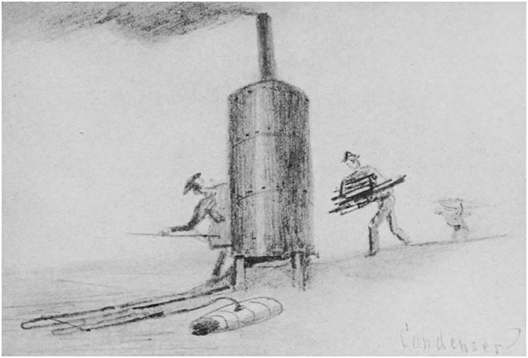 A brief résumé of the work performed during their seven months' imprisonment I have compiled from the journal of Passed Assistant Engineer Blye, who remained upon the island during our absences.