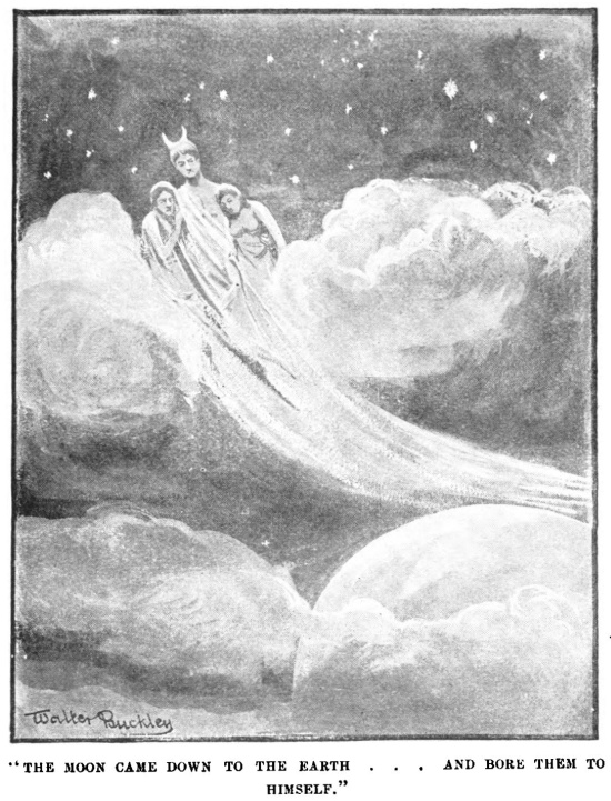 The Moon heard Bateta’s voice, and coming out from behind the cloud with a white, smiling face, said, “It is well, Bateta; lo! I come to help thee.”