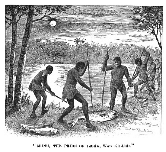 The nightly custom of gathering around the camp fire, and entertaining one another with stories, began in 1875, after Sabadu, a page of King Mtesa, had astonished his hearers with the legend of the “Blameless Priest.”