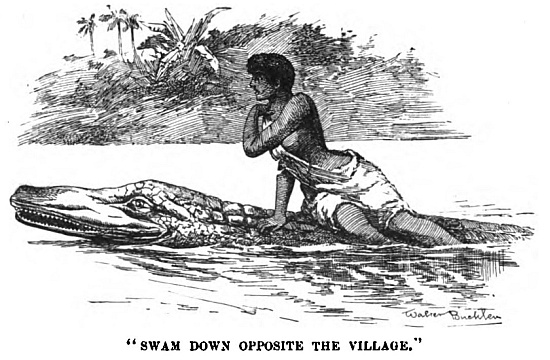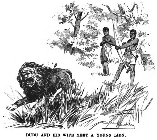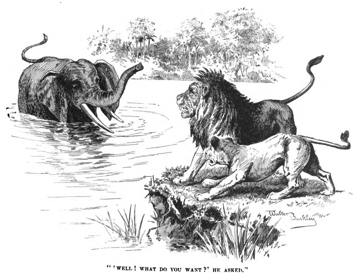“It is very simple. Bateta coaxed a dog to live with him because he found that the dog preferred to sit on his haunches and wait for the bones that his family threw aside after the meal was over, rather than hunt for himself like other flesh-eating beasts. One day Bateta walked out into the woods, and his dog followed him. After a long walk Bateta rested at the foot of the straight tall tree called the palm, and there were a great many nuts lying on the ground, which perhaps the monkeys or the wind had thrown down. The dog after smelling them lay down and began to eat them, and though Bateta was afraid he would hurt himself, he allowed him to have his own way, and he did not see that they harmed him at all, but that he seemed as fond as ever of them. By thinking of this he conceived that they would be no harm to him; and after cooking them, he found that their fat improved the flavour of his vegetables, hence the custom came down to us. Indeed, the knowledge of most things that we know to-day as edibles came down to us through the observation of animals by our earliest fathers. What those of old knew not was found out later through stress of hunger, while men were lost in the bushy wilds.”