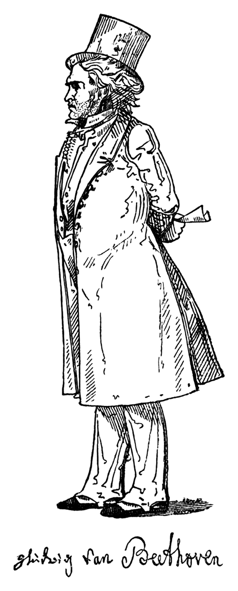 An idealized portrait of Beethoven, representing him as, in the opinion of many of his admirers, he must have looked in his moments of inspiration, would undoubtedly have made a handsomer frontispiece to this little work, than his figure roughly sketched by an artist who happened to see the composer rambling through the fields in the vicinity of Vienna.