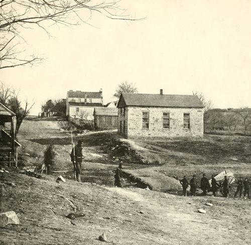 Tyler reached the Stone Bridge before six in the morning and opened fire on a Confederate force under Colonel Evans on the other side of the run. For some time this was kept up, and Evans was much puzzled that the Federals did not attempt to cross the bridge; they merely kept up a desultory fire. The failure of the Union troops to advance led Evans to believe that Tyler’s attack was only a feint and that the real attacking force would approach from some other direction. This belief was confirmed when he descried a lengthening line of dust above the tree-tops far in the distance, north of the Warrenton turnpike. Evans was now convinced (and he was right) that the main Union army was marching to Sudley’s Ford, three miles above the Stone Bridge, and would reach the field from that direction. Quickly then he turned about with six companies of brave South Carolinians and a battalion of “Louisiana Tigers” and posted them on a plateau overlooking the valley of Young’s Branch, a small tributary of Bull Run. Here, not far from the Matthews and Carter houses, he awaited the coming of the Federals.