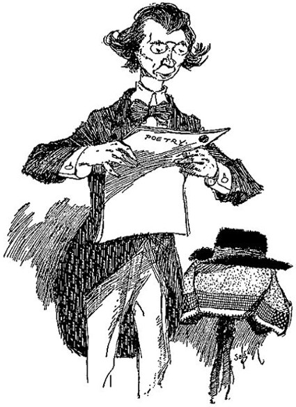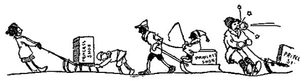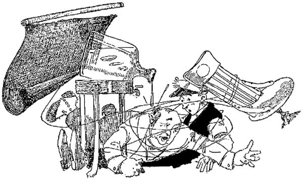 You remember Percy Benson, son of old man Benson who lived on Ocean Street, don't you? Well, Percy was a promising youngster until he began to[23] draw the cover designs of the high school Clarion, although I told his father when he was born that the name Percy was too much of a handicap for any kid to carry successfully. The old man allowed he'd never heard of a shoe manufacturer with that name but said, "The boy's Ma got it out of a book she'd been reading and that settled it." and knowing Mrs. Benson I guess he was right.