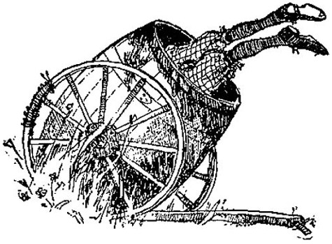 Along about seven it began to grow dark and I began to miss my mother. Uncle Nate sat in a rocking chair in the dining room with his feet on the stove, chewing fine cut and reading a farm journal, and I sat in a small chair with my feet on the floor, reading the "Pruno Almanac" and chewing my fingers.