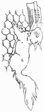 I watched her. She gave me a backward glance, as much as to say, “Don’t you interfere,” and recommenced her haulings and tuggings. She dragged the thing some four feet up, and then along a wooden bar till she got below the little platform outside the sleeping-box. Then she made a spring, but lost her hold of the trap, and down it came clattering to the floor. What could she want it for? It was no good as a receptacle for storing nuts, as the spring door was closed, and the wires were too closely set for it to be possible to push anything through them. I came to the conclusion that she meant to place it somewhere as a barrier to circumvent Peter.