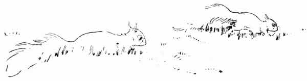 Besides, had Fritz been her father, she[19] would not have disappeared from the wood. Young squirrels remain with their parents, I am told, for a year. Fritz had been assiduous in his attentions to a very charming squirrel with a lovely tail, whom for some time I had called Mrs. Fritz, but she too vanished in September 1913 and left him master of the wood.