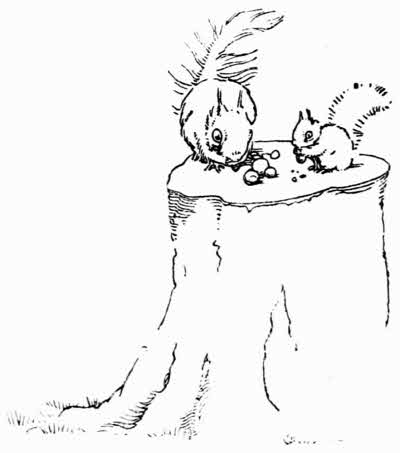 I expected Peter to be much annoyed by the advent of this new trespasser in his domain. He had never for two minutes been on friendly terms with Rufina. In fact, to judge from squirrel signs and tokens, he hated her; but the same day that Ruby arrived, we found the two amicably cracking nuts together.