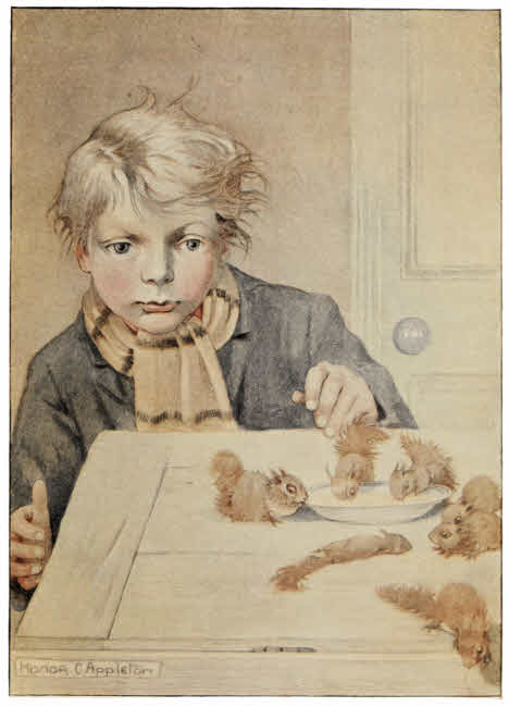 The Project Gutenberg EBook of More About the Squirrels, by Eleanor Tyrrell This eBook is for the use of anyone anywhere in the United States and most other parts of the world at no cost and with almost no restrictions whatsoever. You may copy it, give it away or re-use it under the terms of the Project Gutenberg License included with this eBook or online at www.gutenberg.org. If you are not located in the United States, you'll have to check the laws of the country where you are located before using this ebook. Title: More About the Squirrels Author: Eleanor Tyrrell Illustrator: Honor C. Appleton Release Date: January 25, 2016 [EBook #51031] Language: English Character set encoding: UTF-8 *** START OF THIS PROJECT GUTENBERG EBOOK MORE ABOUT THE SQUIRRELS *** Produced by Chris Curnow, Craig Kirkwood, and the Online Distributed Proofreading Team at http://www.pgdp.net (This file was produced from images generously made available by The Internet Archive.)
