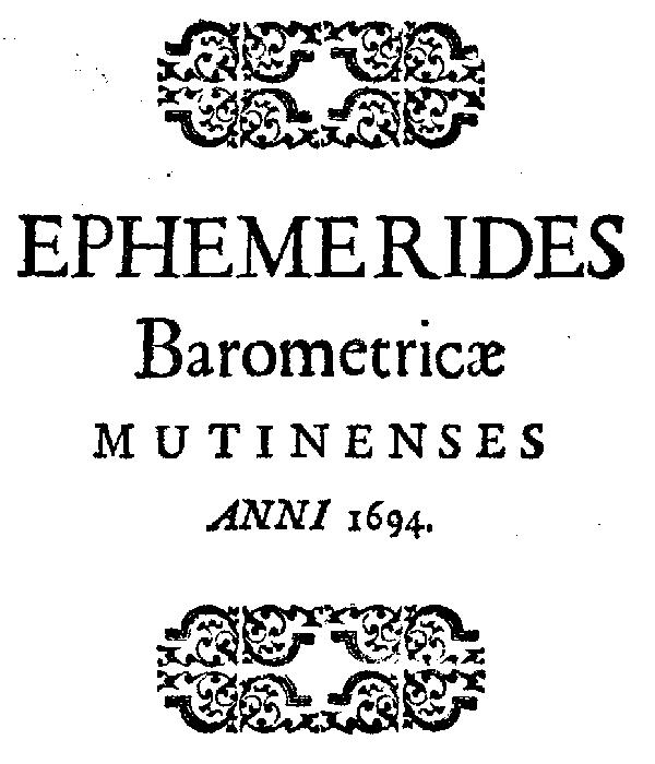 Title: Ephemerides Barometricae Mutinenses (anni M.DC.XCIV)