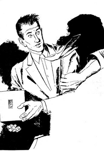 You'll never know what the shouting was about—whether they finally doped out the fact that they'd been robbed, or whether they were trying to help you. You don't care which it is. The field springs up around you and the next button you touch—the one on the board that hasn't been used so far—sends you off into nothingness. There is no beam of light, you can't hear a thing, and you're safe.