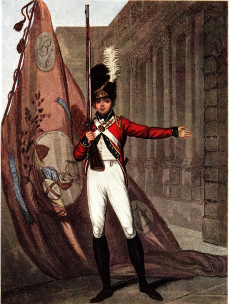 The uniform is similar to that worn by the Somerset House Volunteers of the period.