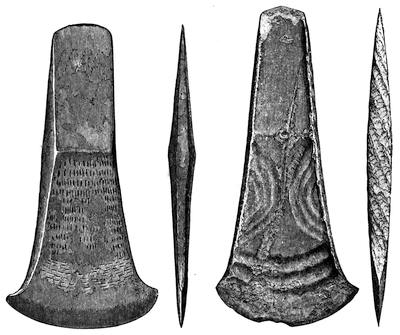 | Origin of the term Palstave—Celts with a Stop-ridge—Varieties of Winged Celts—Transitional Forms—Palstaves with Ornaments on Face—With Central Rib on the Blade—Shortened by Wear—With a Transverse Edge—Looped Palstaves—With Ribs on Blade—With Shield-like Ornaments—With Vertical Ribs on Blade—With semicircular Side-wings hammered over—Iron Palstaves imitated from Bronze—Palstaves with two Loops—Scottish Palstaves—Irish Palstaves—Looped Irish Palstaves—Irish Palstaves with Transverse Edge—Comparison with Continental Forms | 70 |