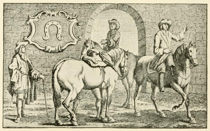 While John of Gaunt (1339-99), son of Edward III. of England, was riding through the town of Lancaster, his horse cast a shoe, which was kept as a souvenir by the townspeople, and fastened in the middle of the street. And in accordance with a time-honored[6] custom a new shoe is placed in the same spot every seven years by the residents of Horse-Shoe Corner.[18]