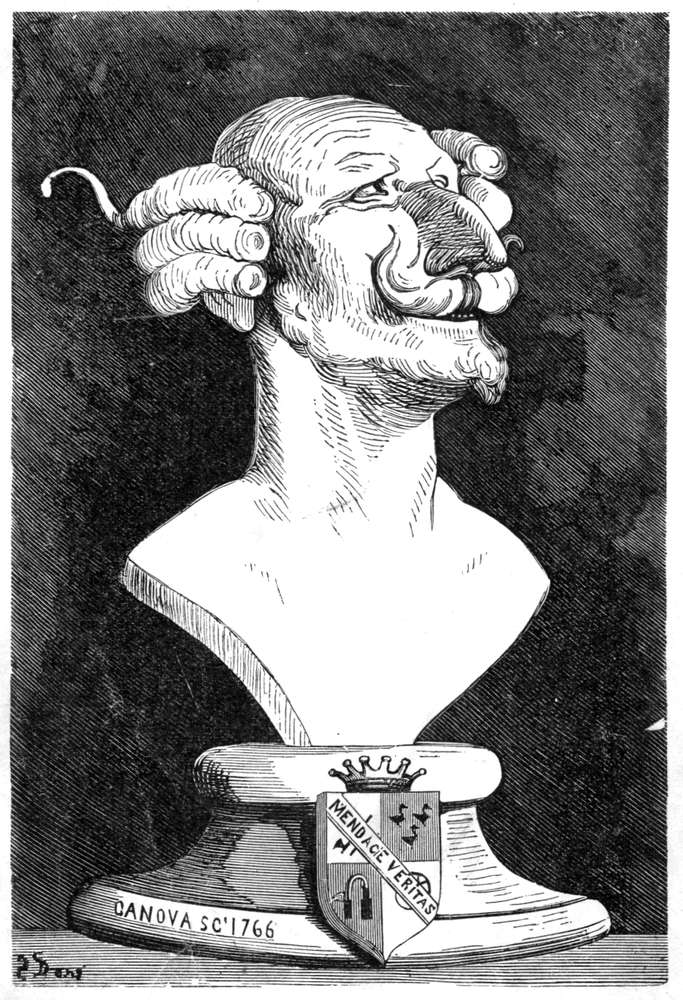 Jeg hadde ofte lagt merke til, at generalen hadde den vane fra tid til anden at løfte paa hatten; men jeg hadde ikke lagt nogen videre vegt herpaa, da det bare var aldeles rimelig, at han maatte være varm i toppen og kunde trænge til at kjøle sig. Endelig opdaget jeg, at hver gang han lettet paa hatten medfulgte den sølvplate, som tjente ham som hjerneskalle istedetfor det bortskutte stykke, og alle de flytende varer som han hadde indtat i aftenens løp, gik da ut i form av lette damper. Saaledes var hemmeligheten opklaret. Jeg fortalte et par av mine venner min opdagelse og vi besluttet at gjøre en prøve paa rigtigheten av den. Jeg stillet mig med min pipe bak generalen og tændte en fidibus i samme øieblik som han lettet paa hatten. Vi blev da vidner til et høist overraskende skuespil. Den røksøile, som opsteg fra generalens hode, var nu forvandlet til en ildsøile; de dunster som var nærmest hodet, blev i den klareste blaa lue til en glorie, pragtfuldere end nogen, som har omstraalt en helgens hode. Generalen blev først litt vred over den frihet, som jeg tok mig paa hans bekostning; men da det jo gav ham et saa høist ærværdig og hellig utseende, tillot han mig snart at gjenta det saa ofte, jeg vilde.