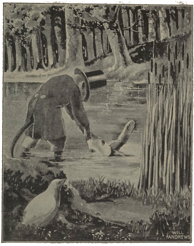 Poor Nibble! He was only half awake. He had forgotten where he was, and it’s rabbit nature to jump first and think while you run. He jumped. His feet slipped, he splashed and the water closed over his long ears.
