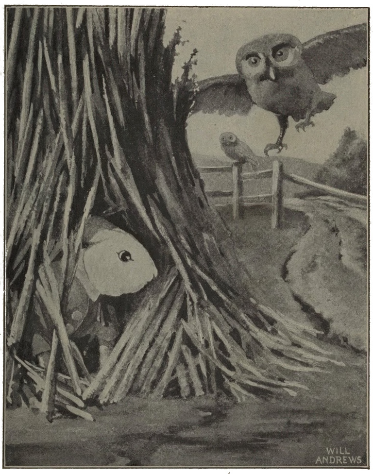 “Oh,” whispered a thrush perched right over Nibble’s head, “I’m afraid for Bobby. If Glider ever makes any one look him straight in the eye they never get away from him.” He said it in a scared voice and Nibble could see that was exactly what Glider was trying to do.