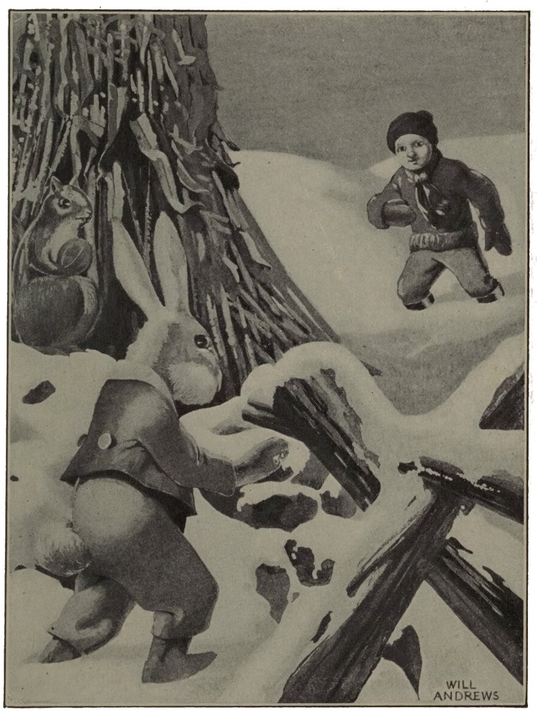 “Well,” answered Nibble Rabbit, “I’ve just been thinking that it doesn’t matter to me which eats which. They’re both tried to eat me since morning.” He was still the little brown knot on his log that he had frozen into when Silvertip came past. “Chatter, is Silvertip looking?”