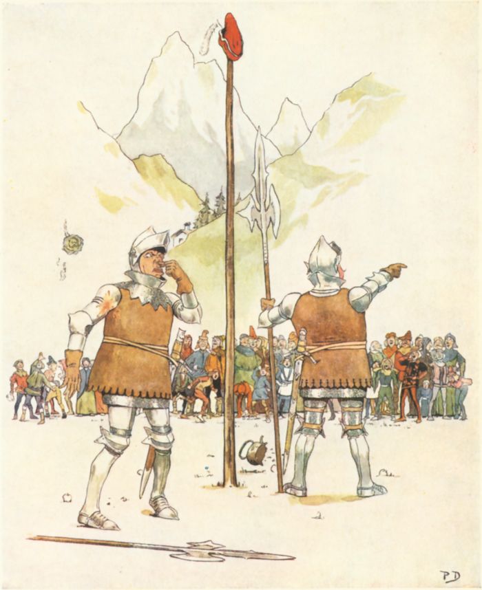 [Transcriber's note: William Tell Told Again is two children's books in one. One is a picture book--16 full-color illustrations by Philip Dadd described in verse by John W. Houghton. The other is a humorous novel by P. G. Wodehouse, based on the picture book. The novel has a lengthier storyline, a more intricate plot, and more characterization. The bound volume intermingled the picture book with the novel, illustrations and poems appearing at regular intervals. Most pictures and verses were distant from the page of the novel that they reflected.
